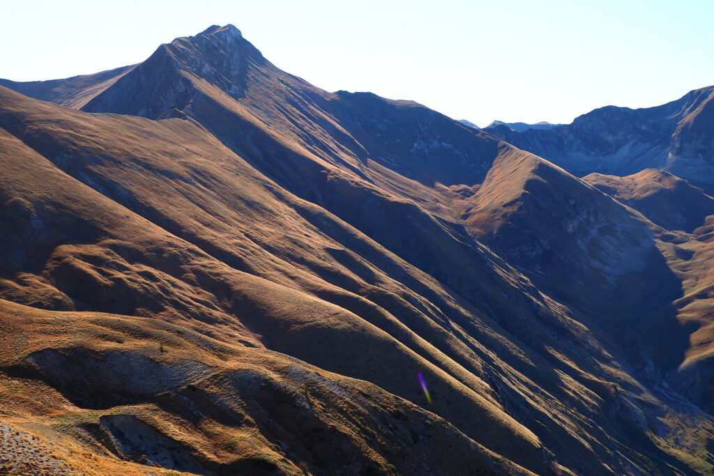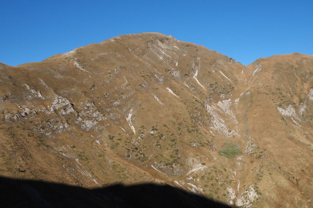 42- Il versante Est del Monte Rotondo, lo stesso della foto n.1 ma con ombre diverse, ben evidente la verde valletta dello stazzo sotto alla Forcella Cucciolara.