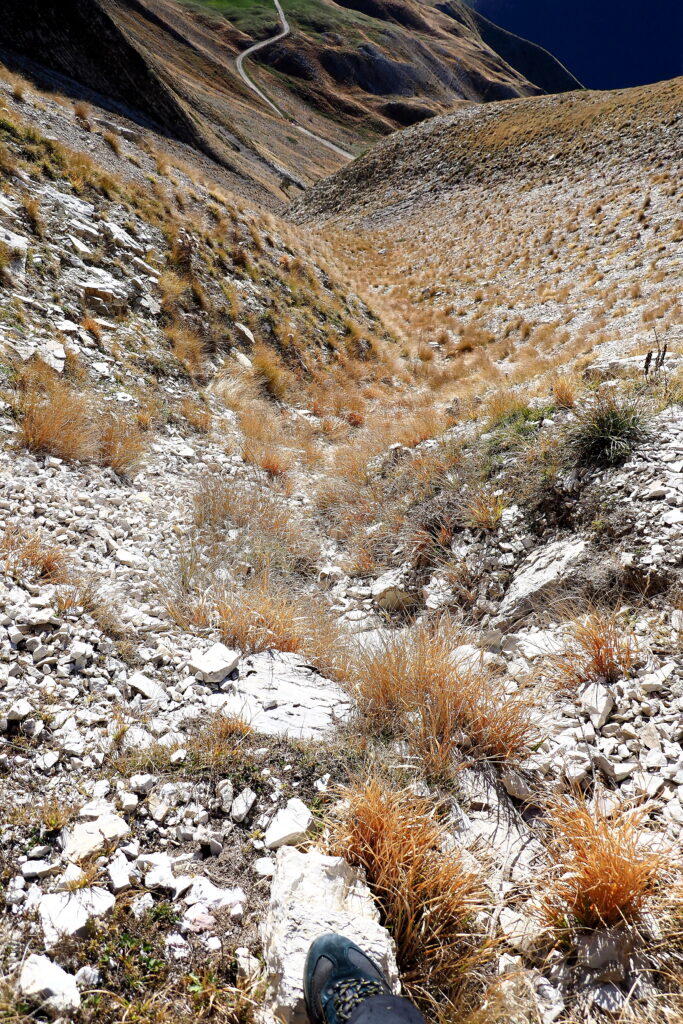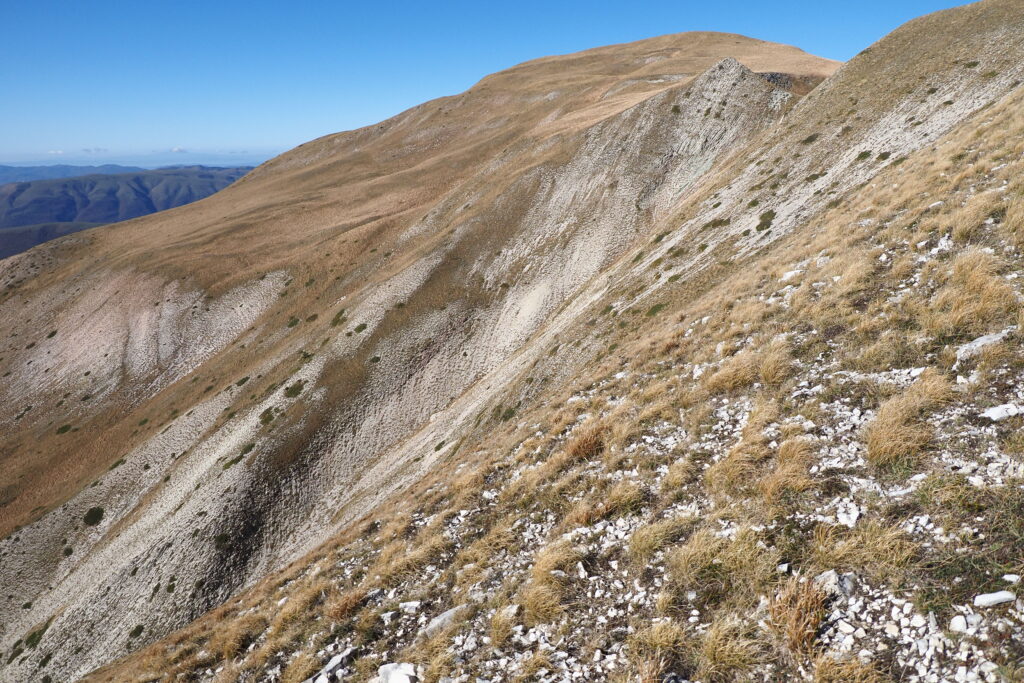 13 – 14- Il tratto della ripida cresta Sud del Monte Rotondo che scende verso l’arido canale.