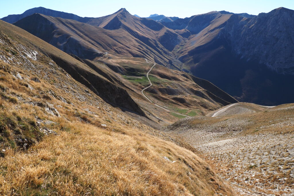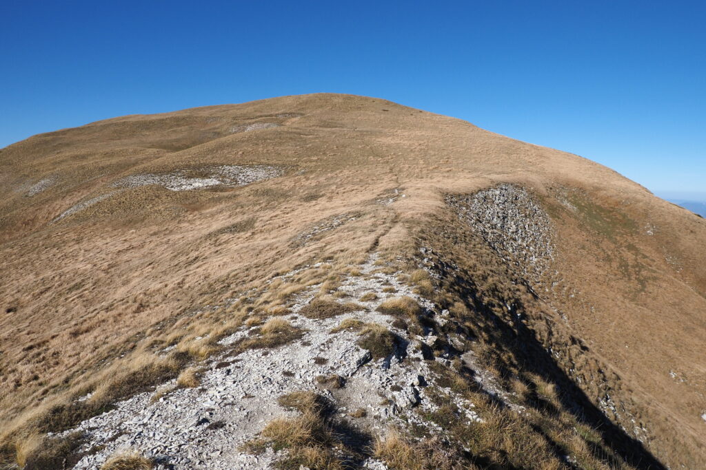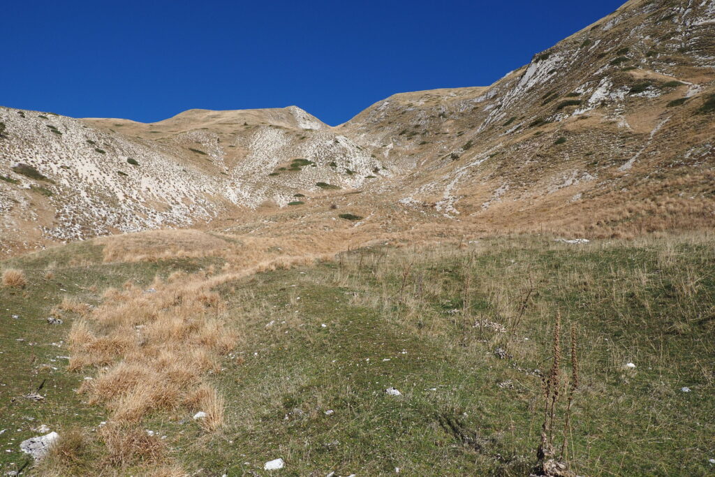 Dalla Forcella si risale la cima sinistra e da qui, per ampio pianoro, fino alla cima del Monte Rotondo.