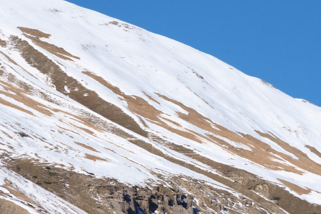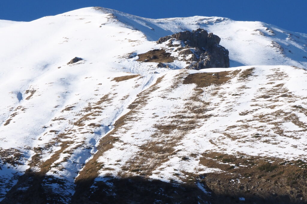 1- La Cima di Pretare, a sinistra la Piramide con l’imbuto innevato del “Canalino”, al centro il canalone innevato della via invernale della “Cresta di Galluccio”, a destra la cresta di salita estiva/invernale del Sassone, visibile nel margine destro.2 – 3- Salendo per il Sentiero dei Mietitori ci si avvicina sempre di più alla Cima di Pretare.34- Zoom sul tratto finale della via invernale della Cresta Est o Cresta di Galluccio.5- I piccoli torrioni rocciosi del tratto iniziale della via della foto n.4, purtroppo quest’anno ancora non c’è neve.6- La cima della “Piramide” e l’imbuto del “canalino” a destra.7- La placconata di roccia denominata “Aia della Regina” con la Grotta delle Fate, alle falde della “Piramide”.8- Il ripido imbuto finale della Via del Canalino fino alla cresta Monte Vettore-Cima di Pretare.9- Le falde della Cima di Pretare con le cenge erbose da cui si accede al Sasso Spaccato, sulla destra: http://www.1000giornisibillini.it/2020/09/25/sasso-spaccato-da-passo-galluccio-per-la-cresta-omonima/10- Il Sasso Spaccato con la recente frana del 2017 post sisma.11- La Fascia Inferiore con vie su roccia di V-VI grado aperte anche dal grande Tiziano Cantalamessa.12- Il primo tratto del Sentiero dei Mietitori, a monte di Passo Galluccio.13- A circa un chilometro dalla strada un seggiolone per bambini piccoli gettato sotto al sentiero dei Mietitori, chi avrà fatto questa fatica di portarlo fin li ed abbandonarlo….che popolo gli Italiani !!!! 14- Tronco di Faggio particolarmente variegato.15- La bellissima ed alta faggeta alle falde della Cima di Pretare.16- Il sole di Dicembre gira velocemente, alle 11 già c’è ombra della via della Cresta di Galluccio.17- Mentre è ancora assolata la parete dove si sviluppa la via estiva/invernale Bachetti-Spinelli del 1973/1982.18- Continuando il sentiero dei Mietitori dopo il Colle Pisciano ci si avvicina ancora al Sasso Spaccato e si nota ancora meglio l’itinerario di raggiungimento indicato nella foto n.9.19- Una fonte senza nome e senza acqua lungo il sentiero.20 -21- Più avanti si giunge alla nuova Fonte Graniera.2122- Dalla Fonte si osserva, a destra, nella sua maestosità il Sasso Spaccato e la sovrastante cresta Nord estiva/invernale di salita alla Cima di Pretare. Nella parete centrale, proprio sulla verticale della cima, sale invece la via invernale “Diretta Est alla Cima di Pretare”.23- Il Sasso Spaccato con la grande frana del 2017 riportata nel mio articolo: http://www.1000giornisibillini.it/2021/06/20/passo-galluccio-la-frana-di-sasso-spaccato-versante-nord-cima-di-pretare/24 – 25- La zona della Fonte Graniera è soggetta ad una paleofrana monitorata con carotaggi dopo il sisma del 2016, anche se poi le “carote” con tanto di plastica le hanno lasciate sul posto.2526- Il versante Est del Monte Torrone – Sasso D’Andrè con la traccia visibile del “Sentiero dei Taglialegna” che conduce all’imbuto del Monte Vettore e successivamente, fino al Sasso Spaccato: articolo nel mio articolo: http://www.1000giornisibillini.it/2019/01/27/8-sasso-spaccato-e-cima-di-pretare-per-limbuto-del-vettore/27 – 28- Slavine nel versante Est della Cima delle Prata, a monte della Fonte del Pastore.2829- Il canalone tra Monte Torrone e Sasso D’Andre’.30- Il “Sassone”, grande torrione isolato presente sul sentiero che da Santa Maria in Pantano sale per il Monte Vettore passando per la parte superiore dell’imbuto Nord. Anche qui sono presenti dei distacchi di neve.31- Giunti sulla verticale di Sasso Spaccato si nota bene la grande frana.32-Ultima luce del giorno sul versante Est della Cima di Pretare, a destra il Sasso Spaccato. 33- In lontananza la valle di Santa Maria in Pantano con il Monte Oialona a destra e il Monte Sibilla sullo fondo, praticamente senza neve.34- Infruttescenze di Clematis vitalba risplendono alla luce del basso sole invernale.