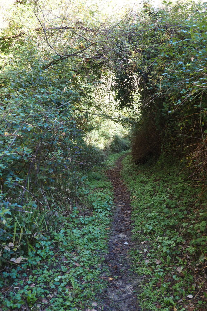 Dopo altri 180 metri si incontra una ulteriore deviazione e si prosegue a sinistra, sempre su terreno ripido e con folta vegetazione che rende faticosa la salita.