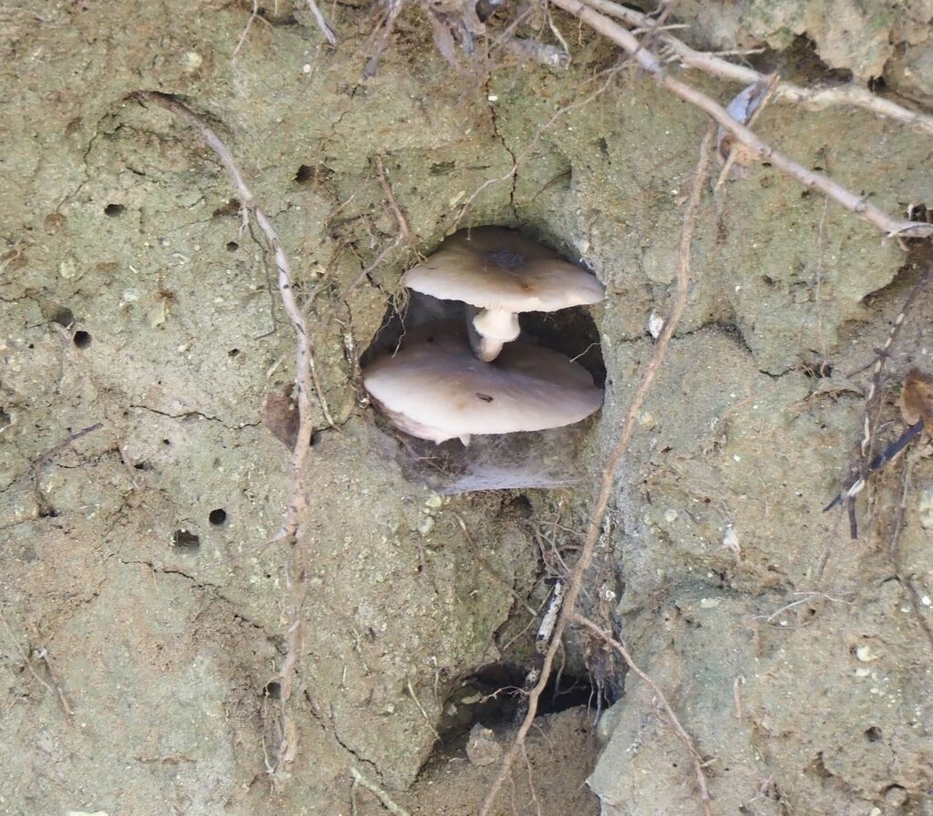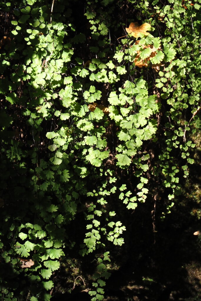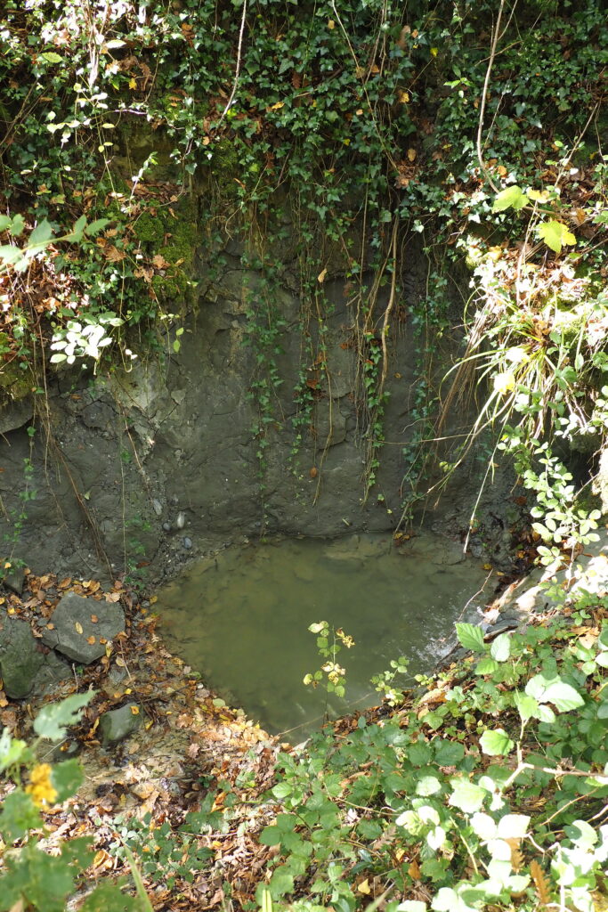 1 – 3- Cascatelle e pozze di acqua nella prima parte del Fosso.234- Luppolo (Humulus lupulus)5- Il sentiero costeggia il fosso e campi agricoli.6- Nel fosso crescono spontanee numerose piante di Alloro (Laurus nobilis).7- Vite selvatica8- Il fosso, nonostante si apre tra basse colline, una caldissima estate ed un secco autunno, porta comunque acqua.9- Una Notonecta, insetto acquatico, popola le pozze d’acqua stagnanti. 10- Due funghi crescono in una buca lungo le sponde del fosso.11- Alghe di fondale formano delle bande di colore in funzione delle onde della debole corrente acquatica del fosso.12- Avvisto un granchio che si nasconde subito nella sua tana a pelo d’acqua senza darmi la possibilità di fotografarlo.13 – 14- Poi finalmente, quasi al termine della mia breve escursione, avvisto un granchio nero.1415- La Fonte del Coppo.16- Nel tratto di sentiero che sale dal fosso verso Castelplanio cresce anche una Palma inselvatichita.17 – 18- Con la palma ed il sentiero avvolto dalla vegetazione sembra di attraversare una foresta tropicale.1819- Nella zona vegeta anche il raro Dracuncolo (Dracunculus vulgaris) dal forte odore di carne marcia (foto scattata a Maggio 2025)20- La felce Capelvenere cresce su alcune pareti stillicidiose (Adiantum capillis-veneris)21- L’ultimo tratto di salita fino a Castelplanio.