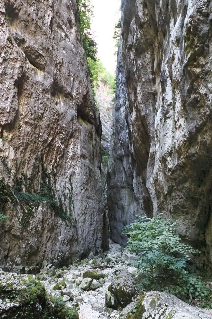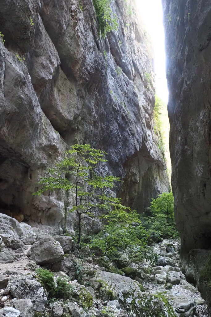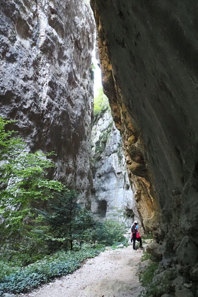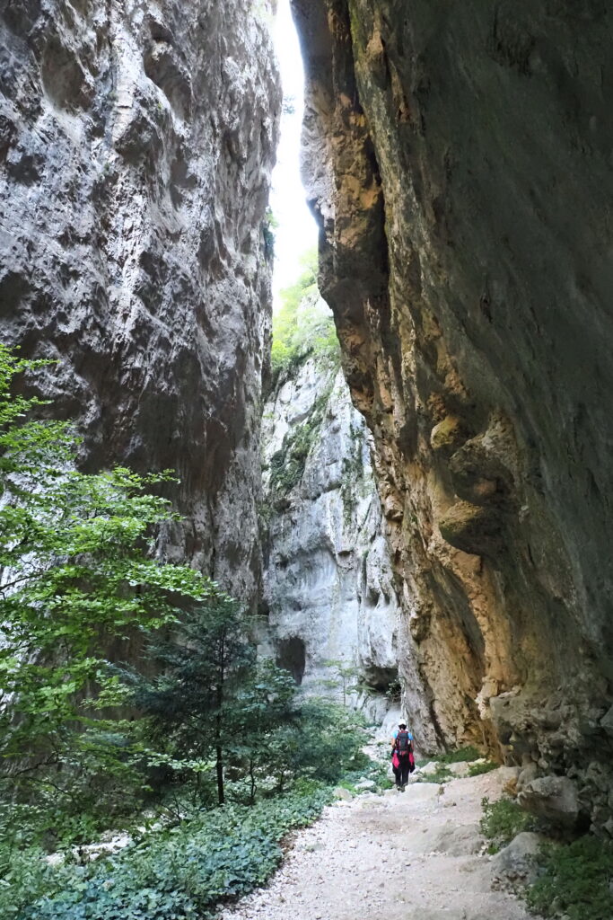 Poi nel tratto centrale la valle si restringe decisamente e si percorre il lungo canyon tra alte pareti rocciose.