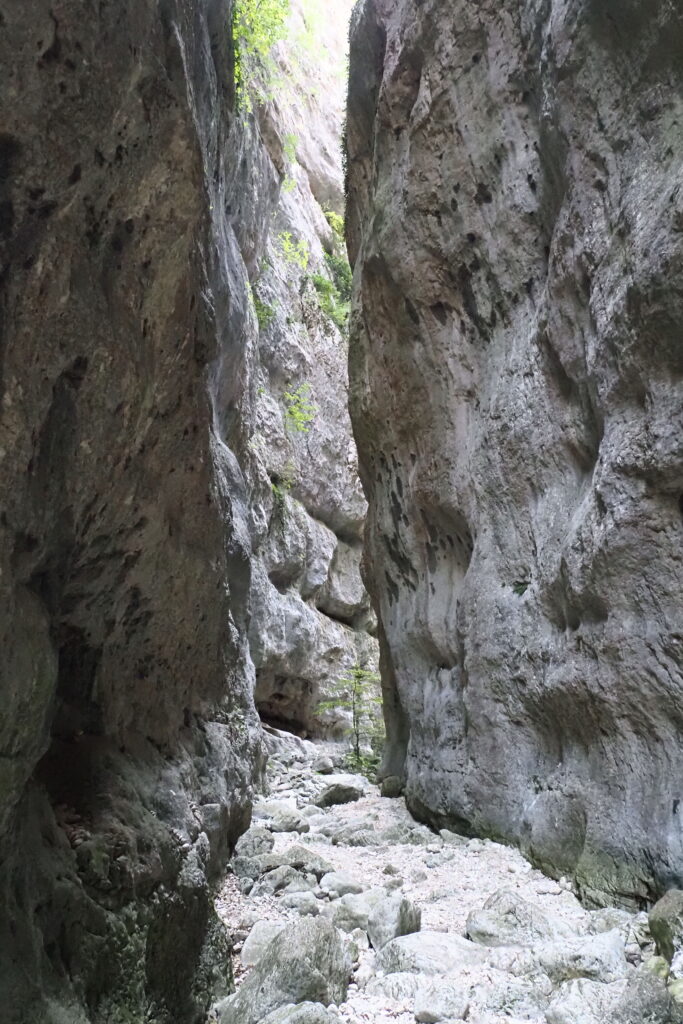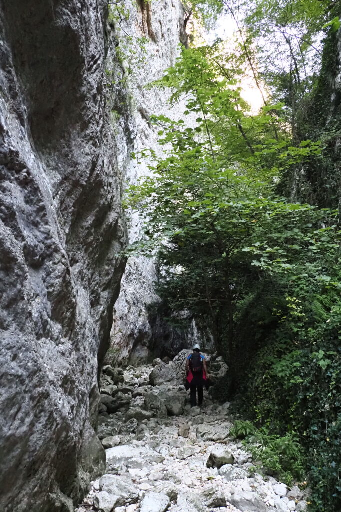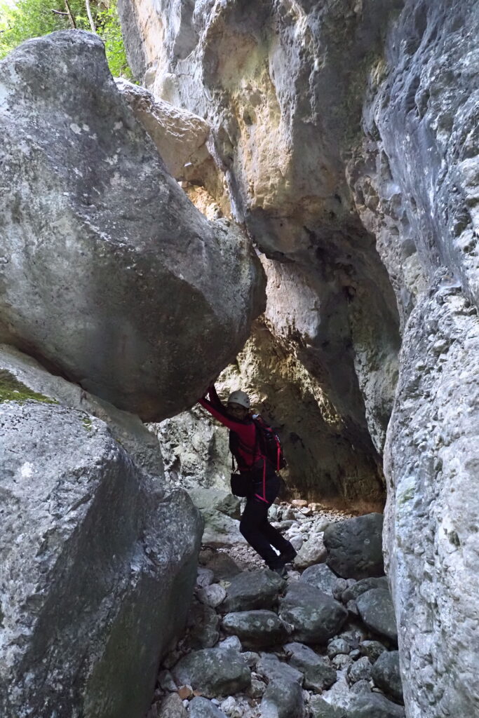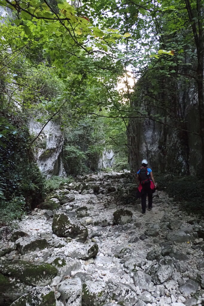 la Forra presenta un fondo molto irregolare con grandi massi caduti dalle pareti dentro alla forra che non è che siano molto rassicuranti