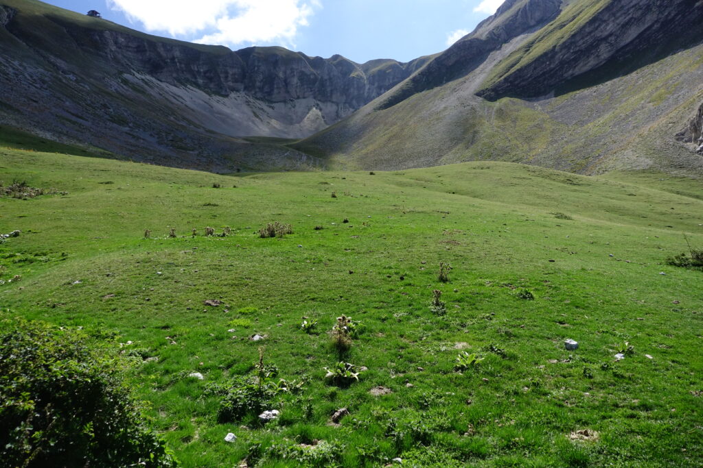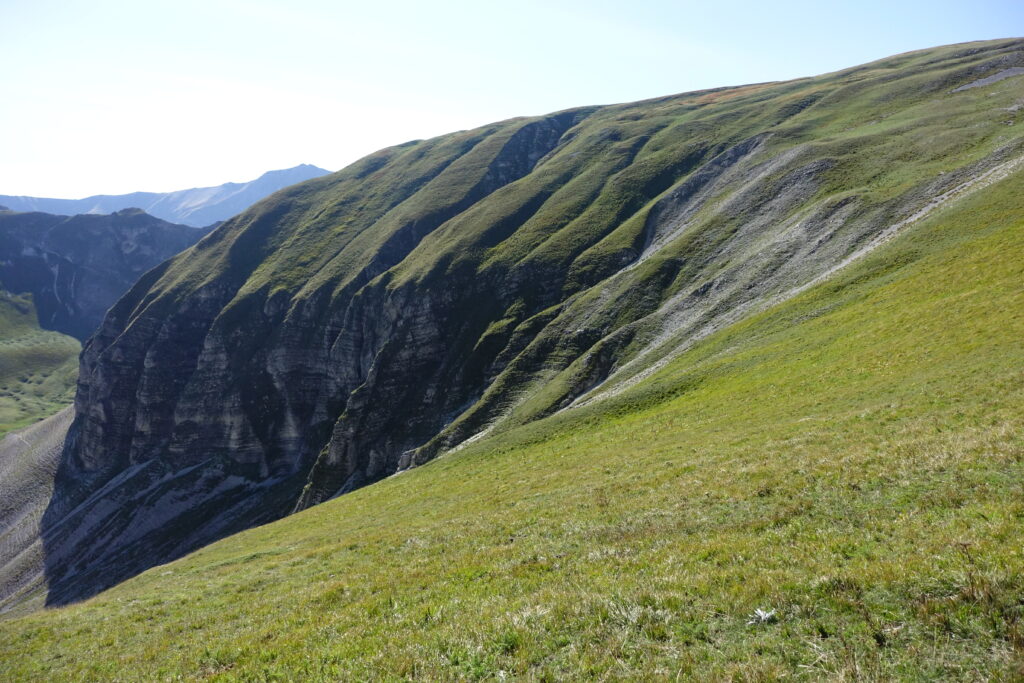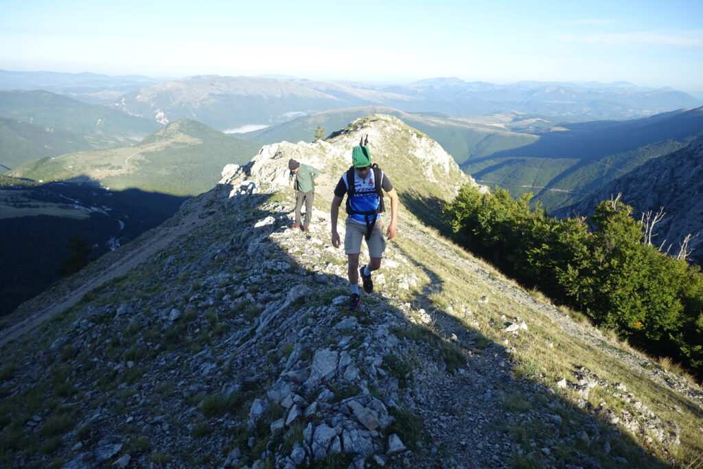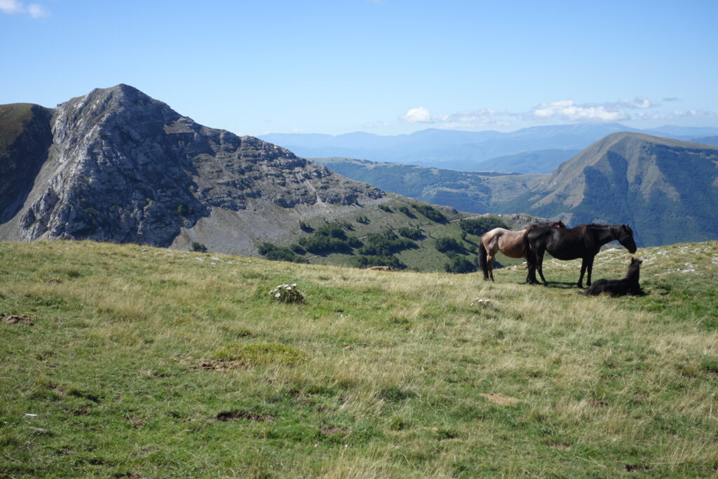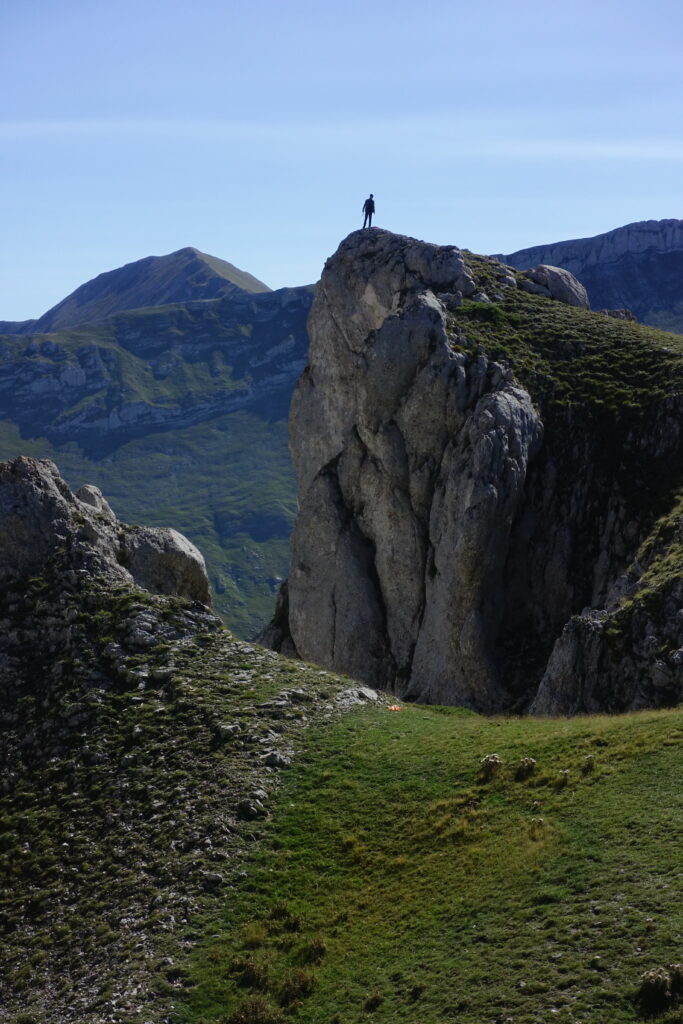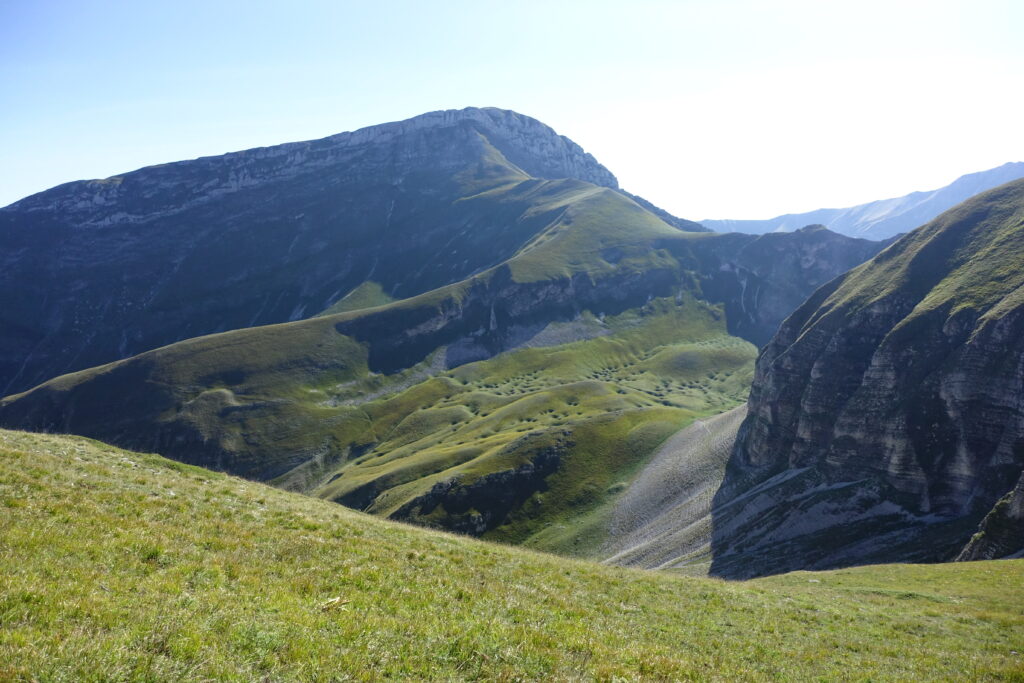 Si ritorna indietro sulla cresta erbosa e si continua a risalirla seguendo gli ometti di pietra fino a raggiungere le prime paretine rocciose (1,3 ore dall’auto).