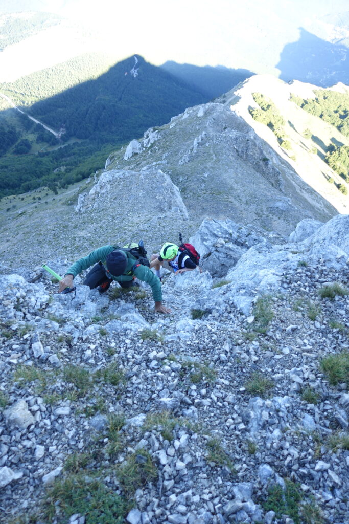 Alcuni tratti superiori, a mia memoria, sono impegnativi e molto esposti per cui in caso di difficoltà procedere in cordata.
