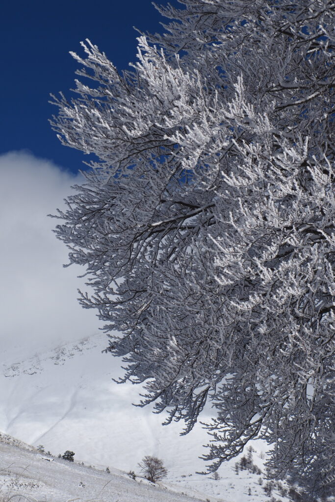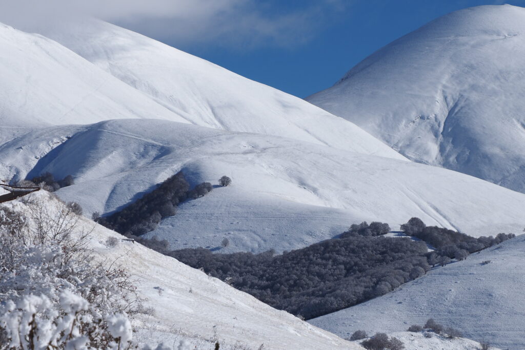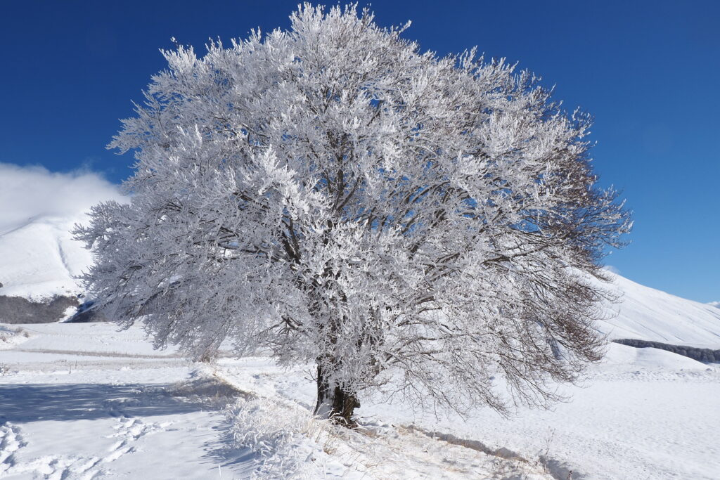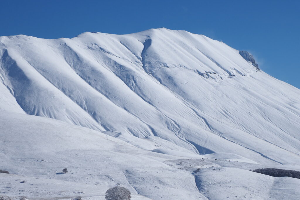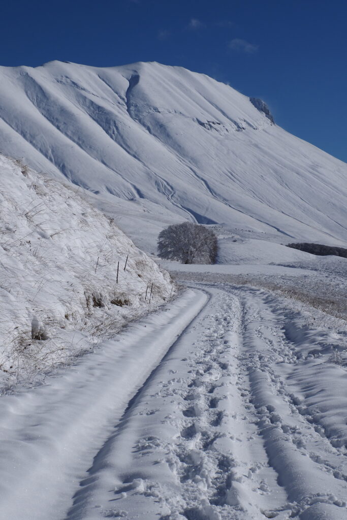 1- I boschi del San Lorenzo, in alto la Forca Viola.2- Lo scoglio dell’Aquila contornato da neve spolverata dal vento di quota.3- La Cima del Redentore vista dalla Madonna della Cona.4- La faggeta dei Colli Alti e Bassi.5- Stradina sotto alla Madonna della Cona.6- Il canale denominato “la Virgola” nel versante Ovest della Cima del Redentore7- La strada per il San Lorenzo con il faggio secolare del Pian Perduto8 – 14- Fenomeni della ricristallizzazione della brina sulla neve.9101112131415 – 20- La più grande creatura vivente della zona : il Faggio secolare del Pian Perduto.161718192021- Il Monte Lieto con, a sinistra, l’inciso canale che ho risalito nel 2024.22- Rosa canina verso il San Lorenzo.23- 24- I campi coltivati del Piano Grande di Castelluccio, non completamente ricoperti dalla neve, ancora non abbondante.2425- I canali Ovest della Cima del Redentore con il Cordone del Vettore, la faglia del terremoto del 2016.26 – 27- L’imponente Scoglio dell’Aquila con il canale di San Benedetto sulla sinistra.2728 – 29- Campi coltivati alla base del Cordone del Vettore.2930- La Valle delle Fonti con i canali gemelli del Monte Argentella.31- Il Monte Cardosa.32- Il Monte Porche con il fosso della Giumenta e della Fonte del Sambuco.33 -Il Fosso della Fonte del Sambuco, in fondo a sinistra lo Scoglio della Volpe e poco sopra, una ennesima spaccatura provocata dal terremoto del 2016 già oggetto di mio reportage. Dalla strada, poco prima della frazione di Gualdo di Castelsantangelo sul Nera, noto dei punti neri anomali tra la neve, ……….forse animali34- Effettuo uno zoom e mi accorgo che sono cavalli lasciati ancora al pascolo tra la neve a quella altitudine.
