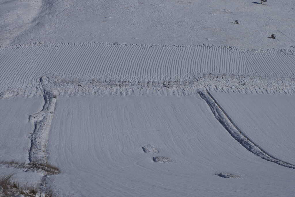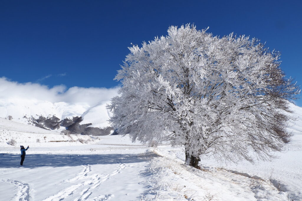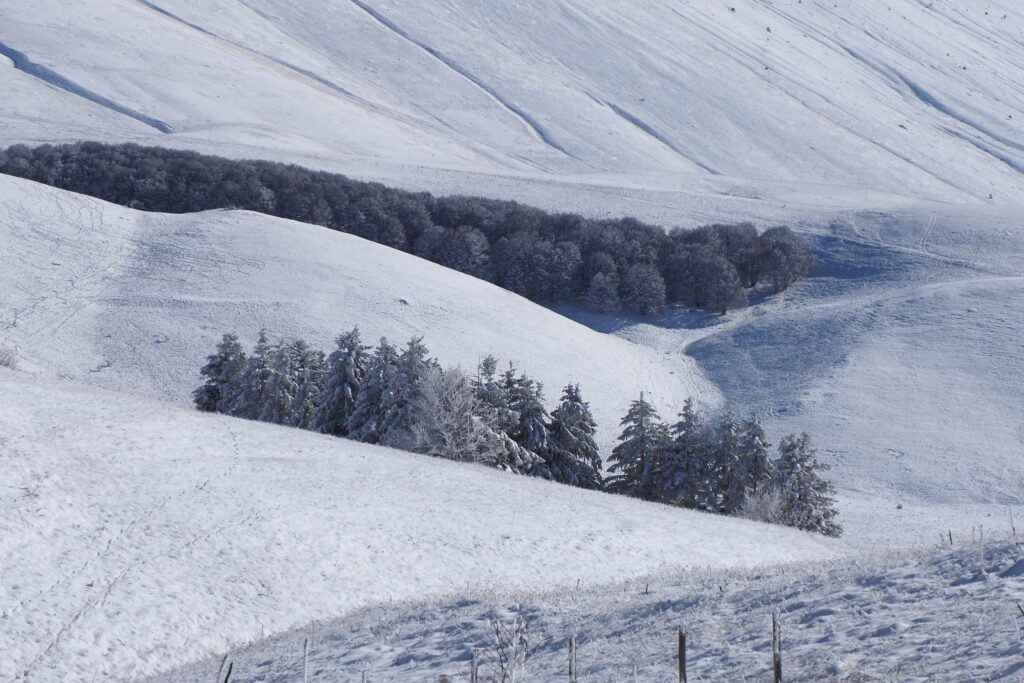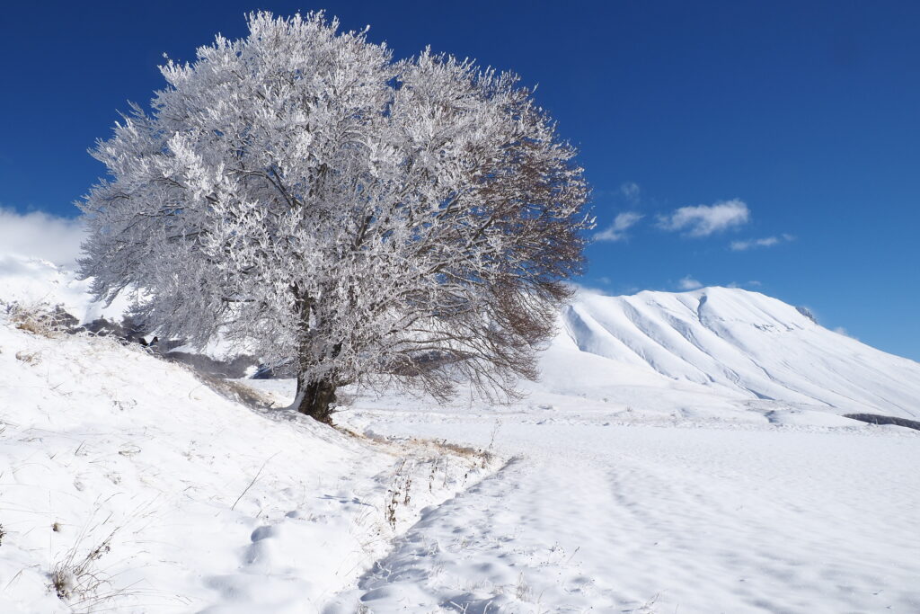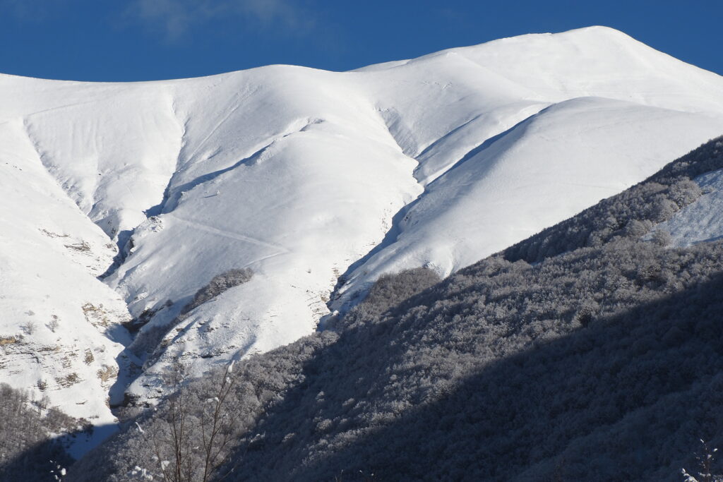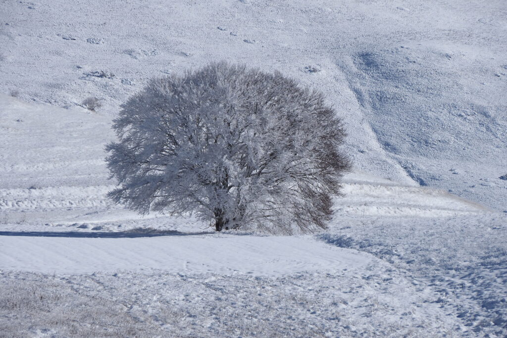 1- I boschi del San Lorenzo, in alto la Forca Viola.2- Lo scoglio dell’Aquila contornato da neve spolverata dal vento di quota.3- La Cima del Redentore vista dalla Madonna della Cona.4- La faggeta dei Colli Alti e Bassi.5- Stradina sotto alla Madonna della Cona.6- Il canale denominato “la Virgola” nel versante Ovest della Cima del Redentore7- La strada per il San Lorenzo con il faggio secolare del Pian Perduto8 – 14- Fenomeni della ricristallizzazione della brina sulla neve.9101112131415 – 20- La più grande creatura vivente della zona : il Faggio secolare del Pian Perduto.161718192021- Il Monte Lieto con, a sinistra, l’inciso canale che ho risalito nel 2024.22- Rosa canina verso il San Lorenzo.23- 24- I campi coltivati del Piano Grande di Castelluccio, non completamente ricoperti dalla neve, ancora non abbondante.2425- I canali Ovest della Cima del Redentore con il Cordone del Vettore, la faglia del terremoto del 2016.26 – 27- L’imponente Scoglio dell’Aquila con il canale di San Benedetto sulla sinistra.2728 – 29- Campi coltivati alla base del Cordone del Vettore.2930- La Valle delle Fonti con i canali gemelli del Monte Argentella.31- Il Monte Cardosa.32- Il Monte Porche con il fosso della Giumenta e della Fonte del Sambuco.33 -Il Fosso della Fonte del Sambuco, in fondo a sinistra lo Scoglio della Volpe e poco sopra, una ennesima spaccatura provocata dal terremoto del 2016 già oggetto di mio reportage. Dalla strada, poco prima della frazione di Gualdo di Castelsantangelo sul Nera, noto dei punti neri anomali tra la neve, ……….forse animali34- Effettuo uno zoom e mi accorgo che sono cavalli lasciati ancora al pascolo tra la neve a quella altitudine.