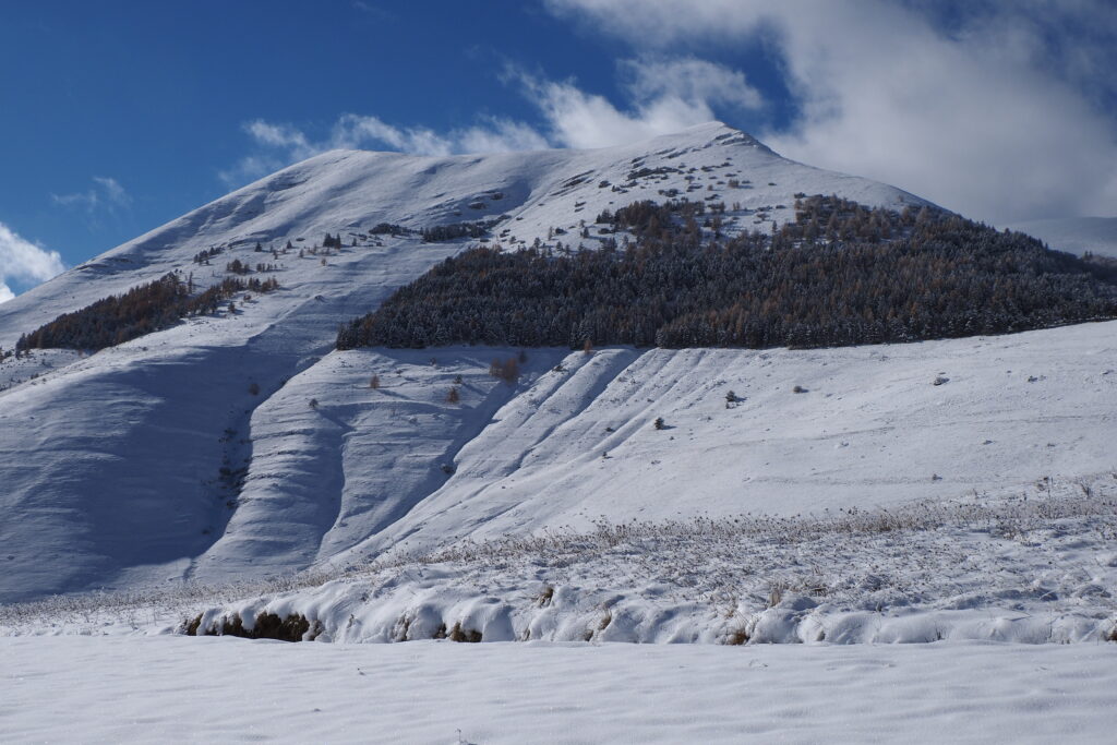 Inoltre, cosa molto interessante, a monte del rimboschimento a conifere sono stati piantati anche numerosi esemplari di Pino Mugo che addirittura si sta riproducendo in modo notevole, creando così un orizzonte di arbusti contorti spontanei oltre il limite del bosco.