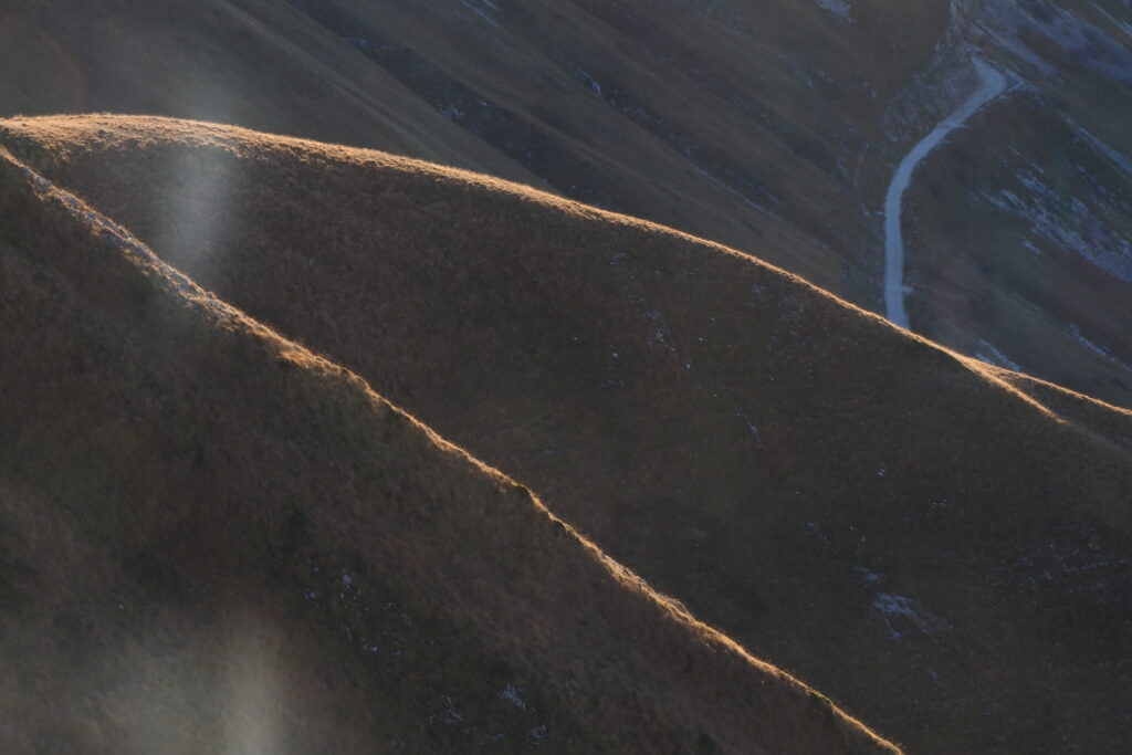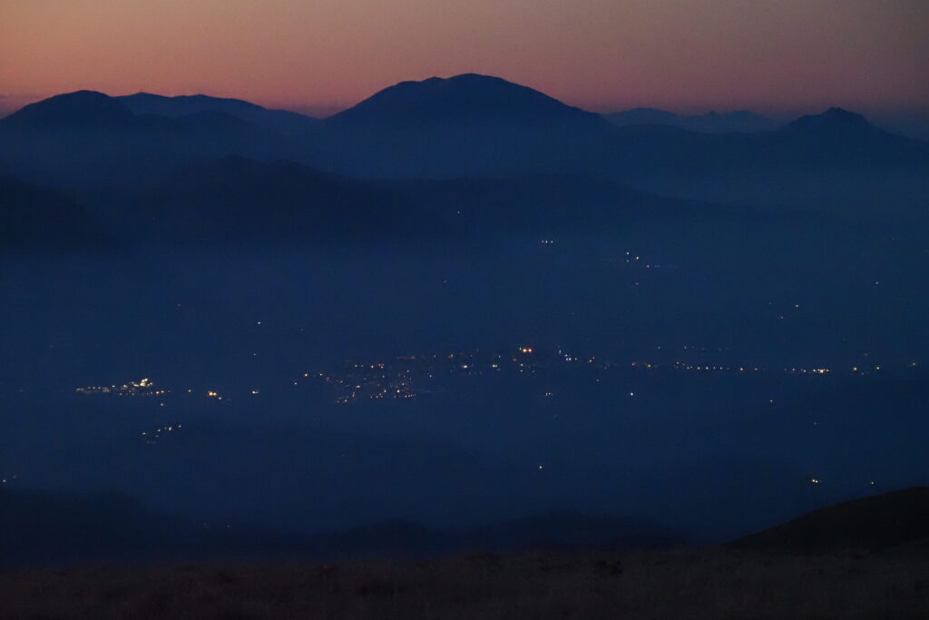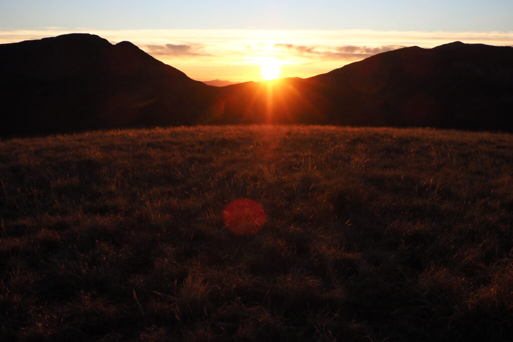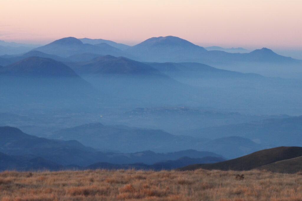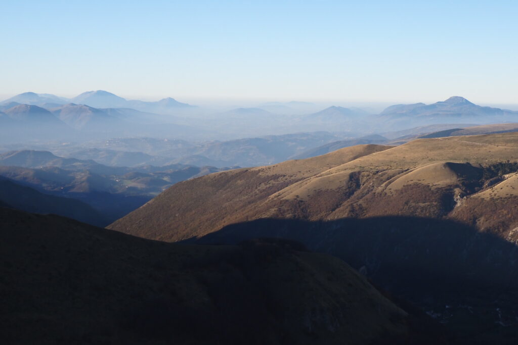 1- Lunghe ombre autunnali nel bosco della strada del Fargno.2 – 3 -Colori autunnali nel bosco.34- Ancora qualche foglia di faggio verde.5- Funghetti su tronco morto.6- La strada Pintura di Bolognola-Rifugio del Fargno.7- La Pintura di Bolognola vista dal sentiero per Forcella Bassete.8- Ultimo raggio di sole dal Monte Acuto a Forcella Bassete.9- Il versante Nord del Pizzo Regina.10- Il Pizzo Regina ed il Pizzo Berro già in ombra.11- Il Monte Piselli e il Pizzo e la Croce di di Pizzo in primo piano.12- La salita da Forcella Bassete verso lo Scoglio del Montone, riprendo il sole, chi toglierà tutti questi pali ?13- Veduta verso Nord con il Monte Cucco ed il Monte Catria sulla sinistra e il Monte San Vicino alla destra14- Zoom sul Monte Catria.15- Zoom sul Monte San Vicino.16- Lo Scoglio del Montone con la mia ombra sempre più allungata.17. Veduta verso Est con il Monte Amandola e Casale Ricci in basso a destra, il Monte dell’Ascensione emerge dalla foschia delle colline Marchigiane.18- Lo scoglio che, dal Casale Ricci, domina le Roccacce sottostanti, erroneamente denominato Crepaccio Tovarich che si trova invece più ad Est del Casale.19 – 20- Salgo in compagnia di Bovini curiosi.2021 – 22- La cresta dello Scoglio del Montone, assolata e controsole (22).2223- Bovini al pascolo intorno al laghetto di Pescolla.24- La cima del Monte Castel Manardo vista dallo Scoglio del Montone.25- Oltre il Monte Sibilla si scopre anche il lontano Gran Sasso.26- Il Monte Prena a destra ed il Monte Camicia a sinistra.27 – 29- Ultime luci ed ombre prima del tramonto sulla cresta dello Scoglio del Montone.282930- Verso il tramonto il Monte dell’Ascensione si fa più netto.31- Le valli tra le provincie di Fermo, Ascoli Piceno e Teramo.32- Veduta verso Sud fino addirittura alla Majella.33- Il Monte San Vicino con il Monte d’Aria con il grande ripetitore a destra.34- La cima del Pizzo Regina ormai con il sole tramontato.35- Il sole verso il tramonto sulla Forcella del Fargno.36- Il Gran Sasso al tramonto.37- Il Monte Prena e il Monte Camicia al tramonto.38- Il Monte dell’Ascensione al tramonto.39 – 42- L’ultimo raggio di sole al Monte Castel Manardo.40414243- Il sole ormai tramontato.44- La vallata di Camerino al tramonto.45- L’ultimo raggio di sole sulla cima di Monte Castel Manardo, il mio zaino già metà in ombra.46 – 47- Dopo 15 minuti dal tramonto sorge la luna piena.4748 – 50- La luna ed il palo della cima di Monte Castel Manardo.495051- Camerino ha acceso le luci della notte.52- Autoscatto con la luna piena alle spalle.53 – 54- L’ultima luce del tramonto verso Ovest.5455- Le luci della Pintura di Bolognola.56 – 57- Le luci di Bolognola a sinistra e della Pintura a destra, scendendo dalla cresta Nord.5758 -59- Le luci lontane di Sarnano immerse nella foschia.5960- Gli impianti di risalita di Bolognola alla luce della luna piena.61- La porta di Berro alla luce della mia torcia.62- Occhi luminosi mi osservano nella notte, mucche al pascolo.64- La foto n.1 in notturna.
