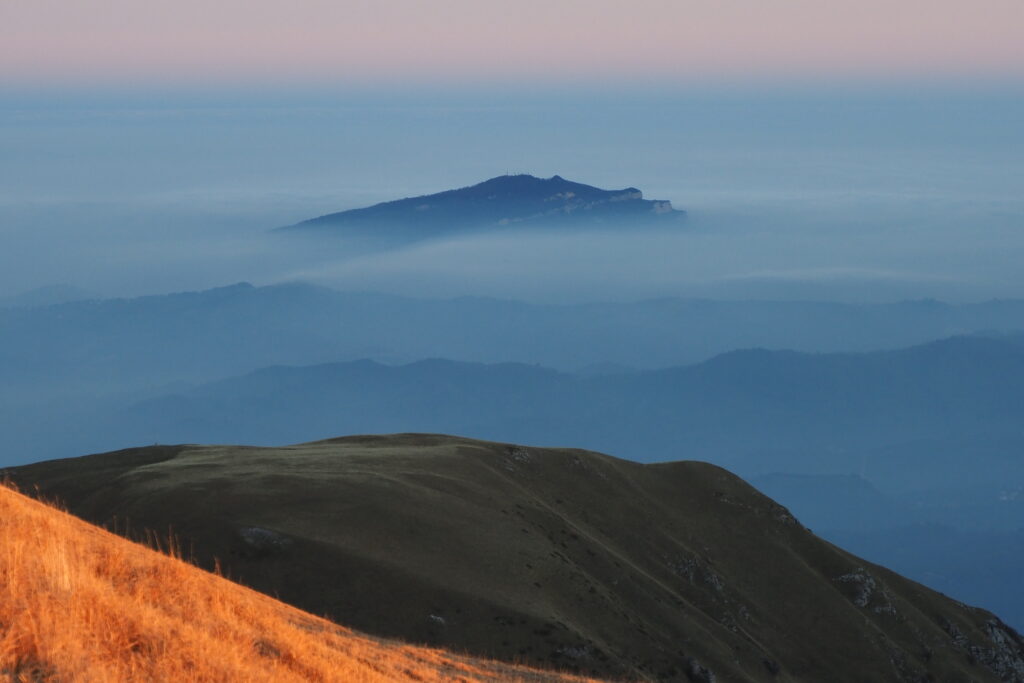 La discesa verso Forcella Angagnola ci ha poi regalato la visione di immagini particolari con le nebbia che nel frattempo aveva riempito la valle dell’Ambro.