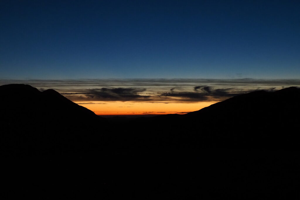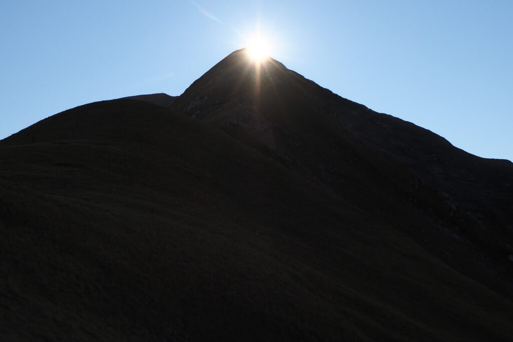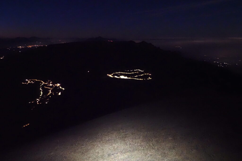 Ho atteso che si facesse buio e sono sceso, con la luce della frontale, per la cresta Nord, fino alla Pintura.